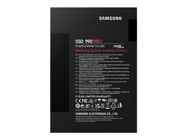 Samsung 990 PRO MZ-V9P2T0BW - SSD - krypterat - 2 TB - inbyggd - M.2 2280 - PCIe 4.0 x4 (NVMe) - 256 bitars AES - TCG Opal Encryption 2.0