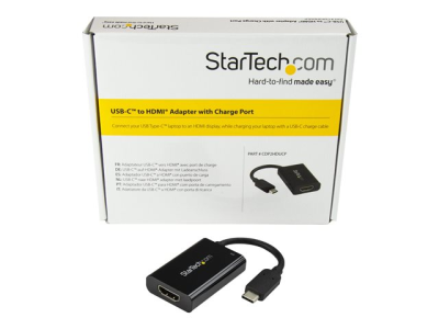 StarTech.com USB C till HDMI 2.0-adapter med strömförsörjning - videokonverterare USB Type-C till HDMI-skärm för 4K vid 60 Hz - port som ger strömförsörjning på 60 W för direktladdning - Thunderbolt 3-kompatibel - svart - Videokort - 24 pin USB-C hane till HDMI, USB-C (enbart ström) hona - svart - USB Power Delivery (60W), 4K60 Hz (4096 x 2160) stöd