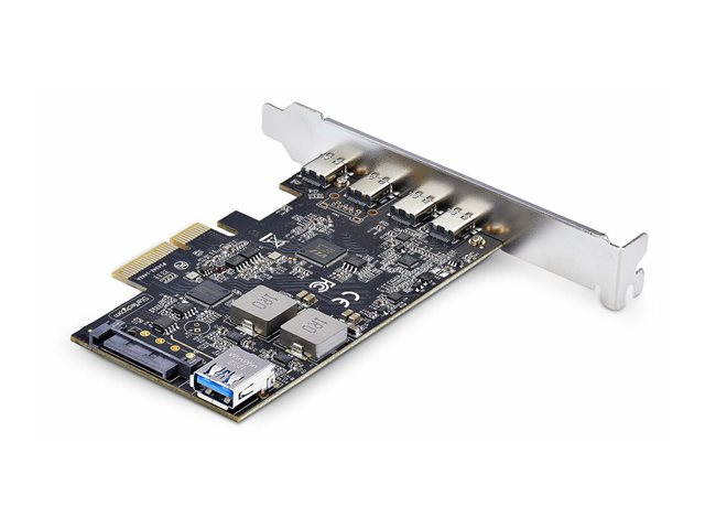 Uppgradera din dators anslutningsmöjligheter med StarTech.com 5-Port USB PCIe Card. Detta USB 3.2 10 Gbps PCI Express-kort har fyra externa USB-C-portar och en intern USB-A-port, vilket ger ett brett utbud av anslutningsmöjligheter för olika enheter. Med stöd för USB 3.2 Gen 2 levererar det dataöverföringshastigheter på upp till 10 Gbps, vilket möjliggör snabba och effektiva filöverföringar. Detta mångsidiga USB PCIe-kontrollkort är kompatibelt med Windows, macOS och Linux och ger ett brett stöd för operativsystem. Det innehåller också en 15-polig Serial ATA-strömkontakt som ger tillförlitlig strömförsörjning till anslutna enheter. Kortets plug-in-formfaktor och PCI Express 3.0-kompatibilitet gör det till en enkel och effektiv uppgradering för att förbättra systemets anslutningsmöjligheter.