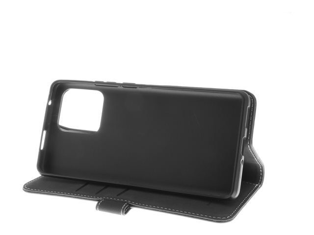 Insmat - Vikbart fodral för mobiltelefon - genuint läder, polykarbonat, bomullssömmar, kartong+papper, polyuretan (PU) - svart - för Motorola Edge 40 Pro