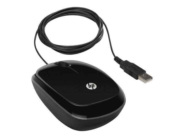 HP X1200 - Mus - höger- och vänsterhänta - optisk - 3 knappar - kabelansluten - USB - gnistrande svart
