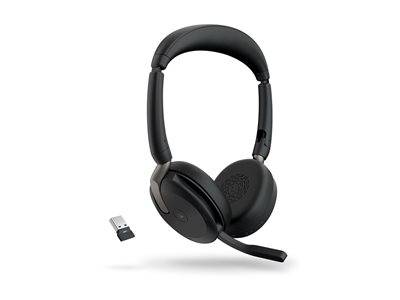 Jabra Evolve2 65 Flex MS Stereo - Headset - på örat - Bluetooth - trådlös - aktiv brusradering - USB-C - svart - med trådlös laddningsplatta - Certifierad för Microsoft-teams