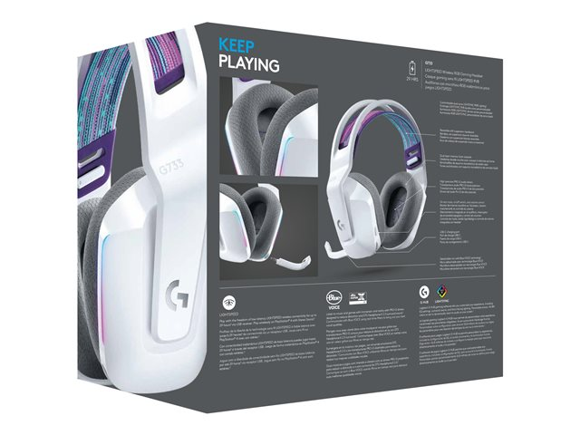 Logitech G G733 LIGHTSPEED Wireless RGB Gaming Headset - Headset - fullstorlek - 2,4 GHz - trådlös - vit