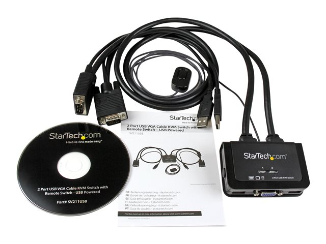 StarTech.com VGA 2 portar USB-kabel med KVM-switch - USB-driven med fjärrswitch - Omkopplare för tangentbord/video/mus - 2 x KVM port(s) - 1 lokal användare - skrivbordsmodell SV211USB