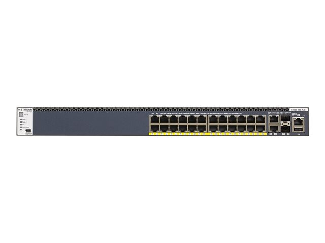 NETGEAR M4300-28G-PoE+ - Switch - L3 - Administrerad - 2 x 10/100/1000/10000 + 2 x 10 Gigabit SFP+ + 24 x 10/100/1000 (PoE+) - främre till bakre luftflöde - rackmonterbar - PoE+ (720 W)