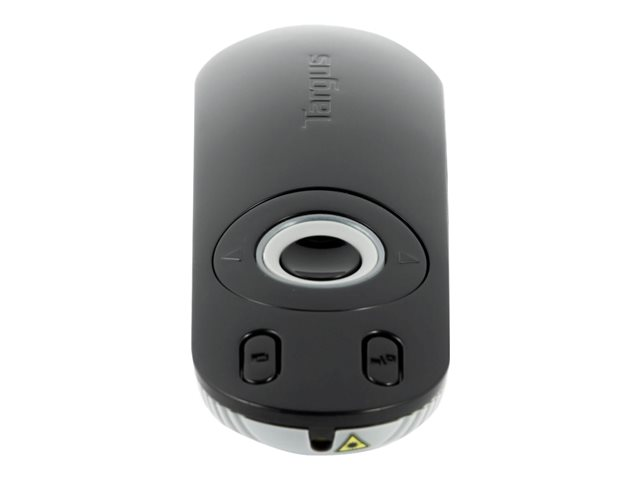 The Targus Laser Presentation Remote features a clear and intuitive button layout, making it easy to give presentations. Thanks to its 2.4GHz cordless technology, you'll be free to move around and control your Microsoft PowerPoint or Apple Keynote presentation remotely, without wires and cords getting in the way. The patent-pending KeyLock Technology locks non-essential buttons when not needed to help eliminate accidental button presses. The integrated laser pointer allows the presenter to highlight important content while the backlit buttons provide visibility in environments with low lighting.