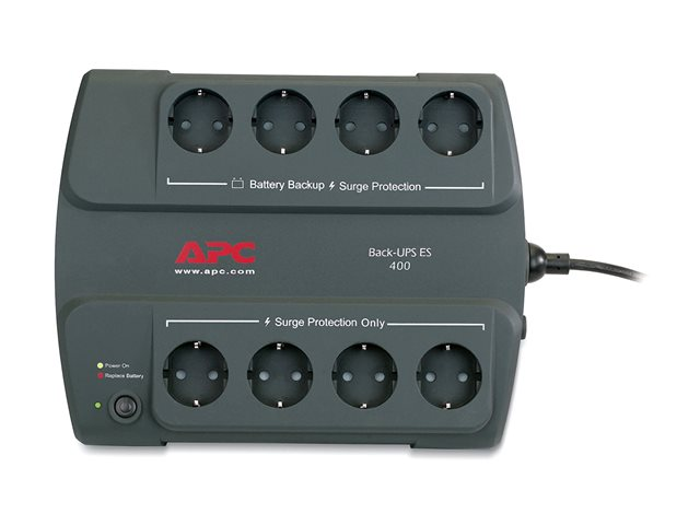 APC Back-UPS ES 400 - UPS - AC 230 V - 240 Watt - 400 VA - 6 Ah - utgångskontakter: 8 - Spanien, Portgual - träkol