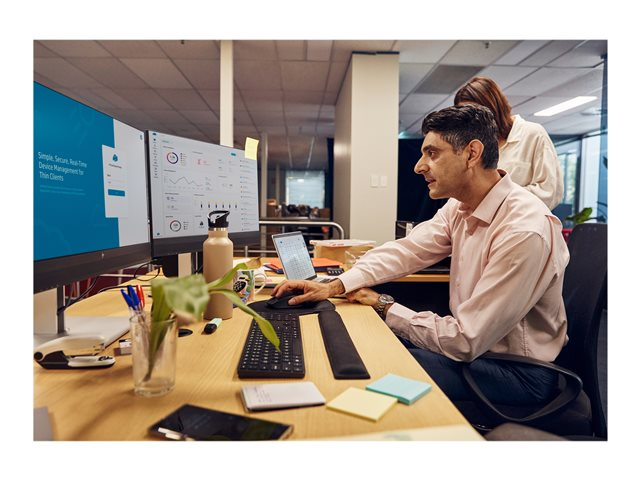 Driv produktivitet och prestanda i en hybrid arbetsmiljö med snabb, effektiv AMD Ryzen -processor1 och kommersiell anslutning och säkerhetsfunktioner av premiumtyp på den här tunna klienten. Den här hållbara, mobila tunna klienten med otrolig design tål slitage och består MIL-STD-testning5, och gör mesta möjliga av er teknikinvestering.