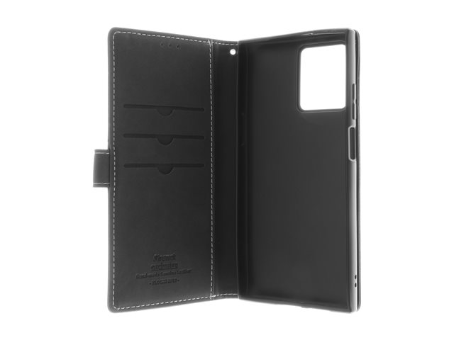 Insmat - Vikbart fodral för mobiltelefon - genuint läder, kartong+papper+aluminiumfolie, termoplastisk polyuretan (TPU), bomullssömmar - svart - för HMD Skyline 650-3271