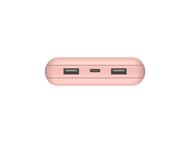 Belkin BoostCharge - Power bank - 20000 mAh - 15 Watt - 3 A - 3 utdatakontakter (24 pin USB-C, 2 x USB) - på kabel: USB-C - guldrosa