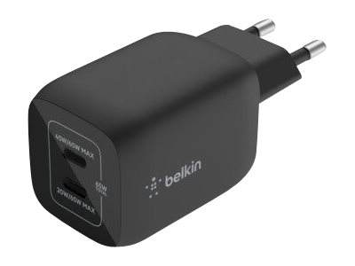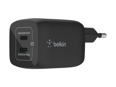 Belkin BoostCharge Pro - Strömadapter - PPS-teknik - 65 Watt - 3.25 A - PD 3.0, Fast Charge - 2 utdatakontakter (USB-C) - svart
