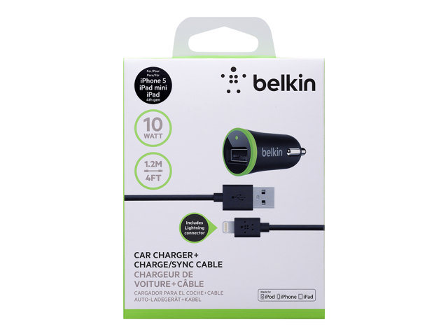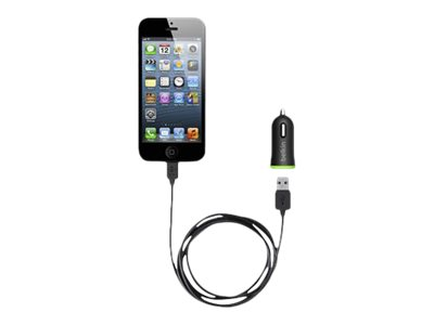 Belkin Car Charger - Strömadapter för bil - 10 Watt - 2.1 A (USB) - på kabel: Lightning - svart