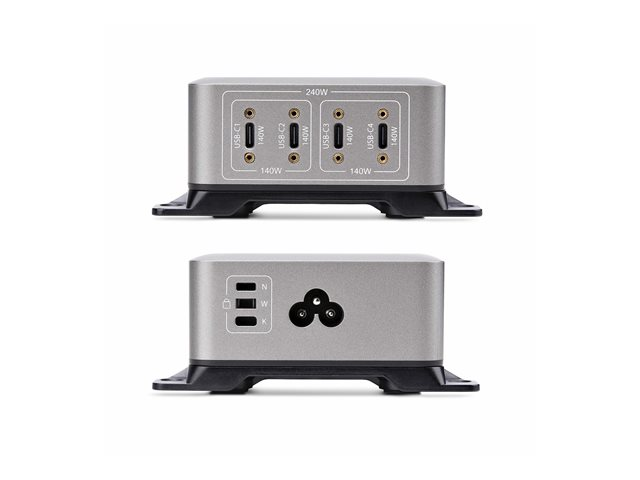 StarTech.com 4-Port USB-C Charger, 240W Total, Single Port 140W EPR - Strömadapter - med ytsmonteringsfäste - 240 Watt - 5 A - Strömmatning 3.1 - 4 utdatakontakter (USB-C)
