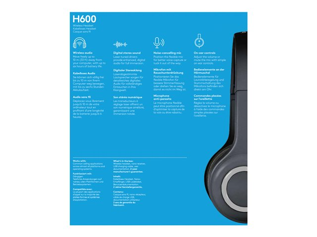 Logitech Wireless Headset H600 - Headset - på örat - 2,4 GHz - trådlös