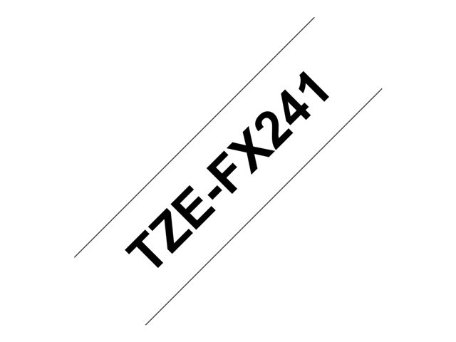 Brother TZeFX241 etikettape, svart på vit, är framtaget med ett speciellt häftämne som gör att etiketter enkelt kan appliceras på kablar, PVC-rör eller vad som helst som är cylindriskt.