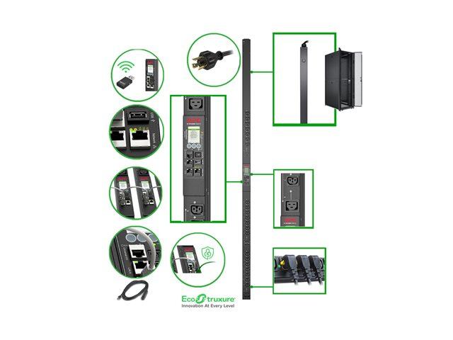 APC Rack PDU 9000 Switched APDU9959NA3 - Kraftdistributionsenhet (kan monteras i rack) - AC 200/208 V - 3.3 kW - 3300 VA - Ethernet 10/100/1000 - ingång: NEMA L6-20 - utgångskontakter: 24 (21 st. IEC 60320 C13/C15, 3 st. IEC 60320 C19/C21) - 0U - 3 m sladd - svart - för P/N: SMX1500RM2UCNC, SMX2KR2UX145, SMX3KR2UNCX145, SMX750C, SMX750CNC, SMX750CUS APDU9959NA3